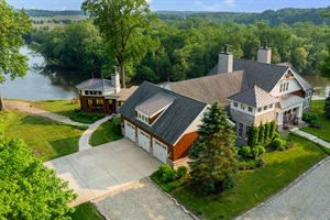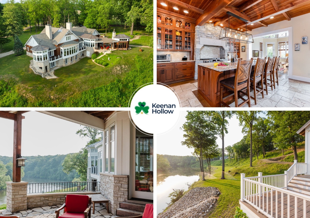 5 Bedrooms • 5 Bathrooms (4 full, 1 half) 5 Baths (4 full, 1 half) • Sleeps 13-14Welcome to Keenan Hollow Farm — a private, 100+ acre retreat along the scenic St. Joseph River, thoughtfully designed for unforgettable gatherings, outdoor adventures, and peaceful escapes. The main house comfortably sleeps up to 18 guests across five well-appointed bedrooms and five bathrooms. The upstairs master suite features a king bed and an ensuite bathroom. On the lower level, two bedrooms each have a queen bed and share a full bathroom, while another queen bedroom includes its own ensuite. The final lower-level bedroom offers a king bed and private ensuite as well. Guests can gather in the spacious living room with panoramic river views, enjoy movie nights in the home theater powered by an Amazon Fire TV Stick, or set the tone with music throughout the main level using the Sonos sound system.