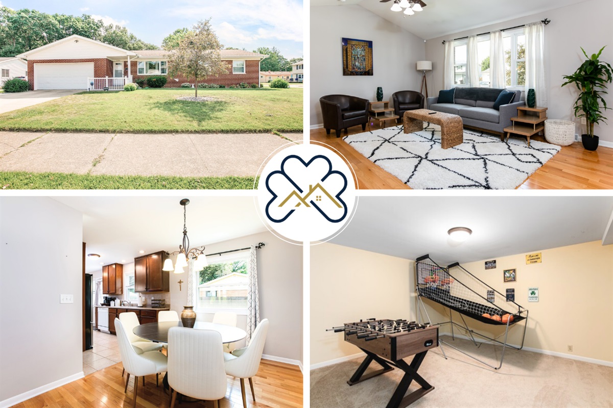 Welcome to the TDJ Getaway in South Bend, IN! This spacious and stylish 4-bedroom, 2.5-bathroom retreat is perfect for families, groups, or anyone looking for comfort and fun. Three of the bedrooms feature cozy queen beds, while the fourth offers a versatile day bed with a trundle—ideal for accommodating extra guests or children.