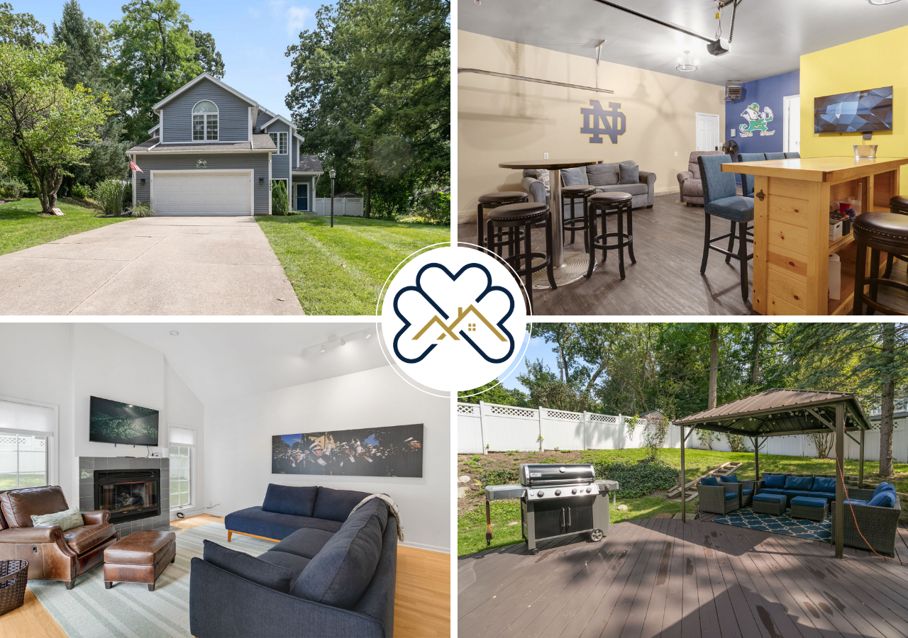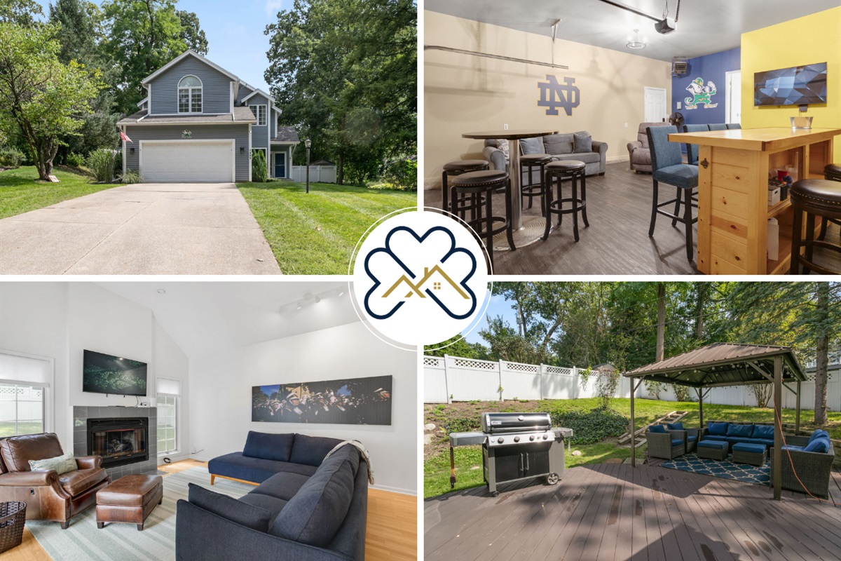 3 Bedrooms • 4 Bathrooms (3 full, 1 half) 4 Baths (3 full, 1 half) • Sleeps 7-10Welcome to The Victory Lounge, the perfect game day retreat less than a mile from Notre Dame Stadium and its tailgate lots! Designed with fans and families in mind, this spacious home combines comfort, style, and the perfect atmosphere for your Notre Dame experience.